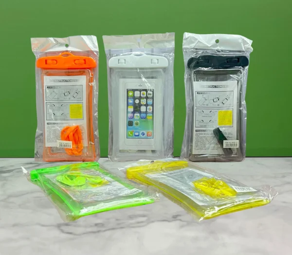 Ideal para playa, piscina, lluvia o deportes acuáticos. Esta funda hermética mantiene tu celular seco y seguro, permitiendo el uso de la pantalla táctil sin sacarlo del estuche. Compatible con la mayoría de modelos. Incluye cordón para colgar en el cuello.