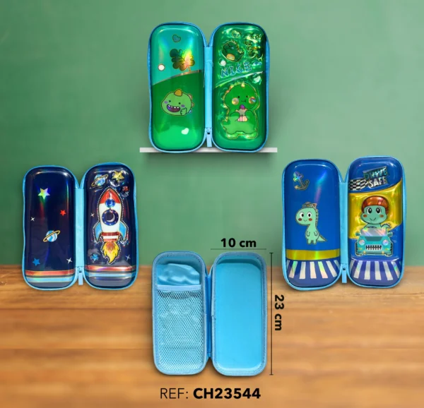 * Material resistente: pasta que protege lápices, colores y accesorios escolares.