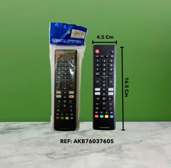 Control remoto compatible con televisores LG Smart TV, ideal para reemplazo o uso adicional. Diseñado con botones de acceso rápido a plataformas de streaming y funciones inteligentes, ofrece una navegación fluida y precisa para disfrutar al máximo de tu televisor.