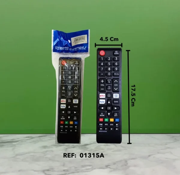 Control remoto universal compatible con televisores Samsung Smart TV, diseñado para ofrecer un manejo rápido, cómodo y eficiente. Su diseño ergonómico y botones de acceso directo a plataformas como Netflix, Prime Video, Hulu y YouTube lo hacen ideal para una experiencia de entretenimiento moderna.