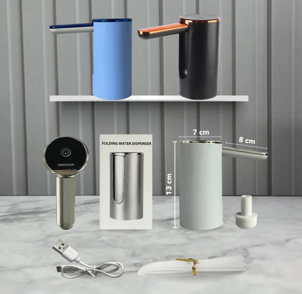 🚰 Dispensador de agua eléctrico portátil, inalámbrico y recargable por USB. Diseñado para bombear agua de botellones de forma automática, cuenta con un sistema plegable que ahorra espacio y facilita su transporte. Ideal para el hogar, la oficina o actividades al aire libre.
