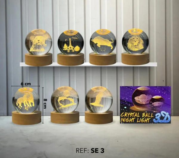 Ilumina tus espacios con un toque único proyectando figuras 3D en cristal, con luz cálida que crea un ambiente acogedor y relajante.