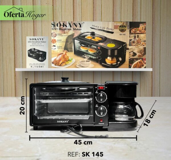 * 3 en 1: sartén superior + horno tostador + cafetera.