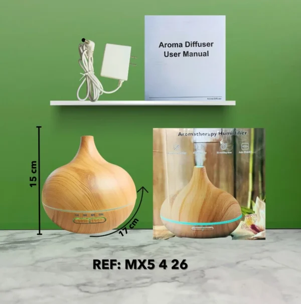 El Humidificador Ultrasónico con diseño elegante de madera es ideal para crear un ambiente relajante y saludable.
