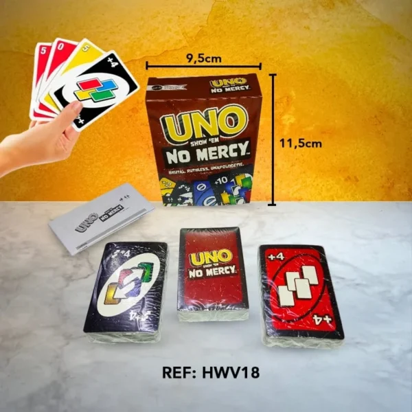 El UNO NO MERCY – Ref. HWV18 llega para poner a prueba amistades, reflejos y nervios… ¡porque aquí las reglas son más intensas y las cartas más brutales! 😈💥