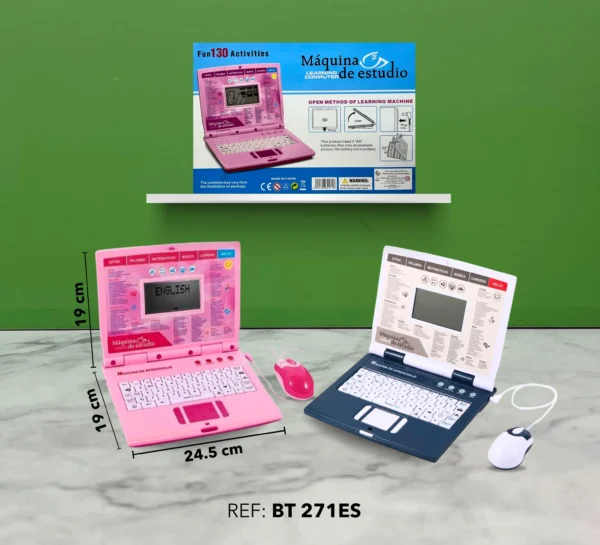 Computador educativo portátil con 130 actividades en español e inglés, ayuda a desarrollar habilidades cognitivas, mejorar el vocabulario y fomentar el aprendizaje bilingüe de forma divertida. Incluye ratón interactivo y múltiples juegos que estimulan la memoria, lógica, matemáticas, letras y más.