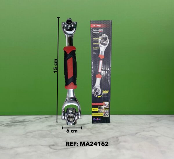 • Cabezal tipo carraca (trinquete) que permite apretar o aflojar sin quitar la herramienta.