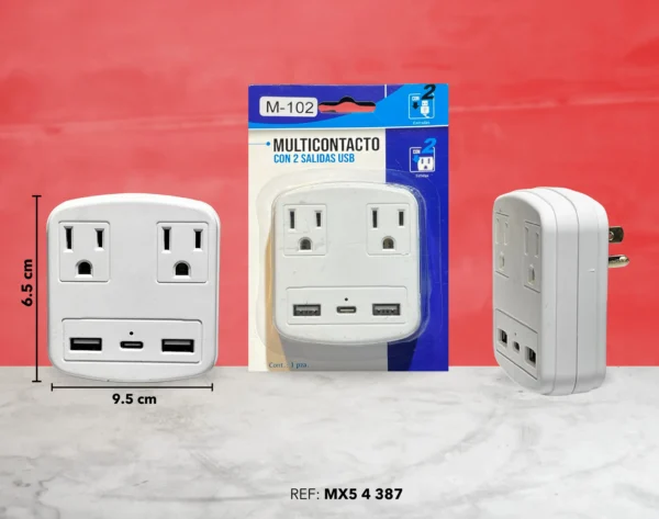 * 2 tomas de corriente + 2 puertos USB!para cargar y alimentar varios dispositivos al mismo tiempo.