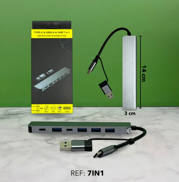 • 7 puertos en 1 (USB 3.0 + Type-C).