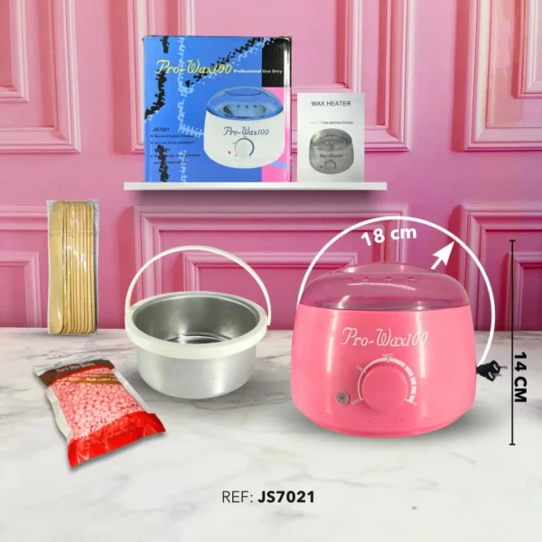 La Olla de Cera Pro WAX100 JS7021 es ideal para uso en salones o en casa, ofreciendo calentamiento uniforme y controlado para una depilación eficiente.