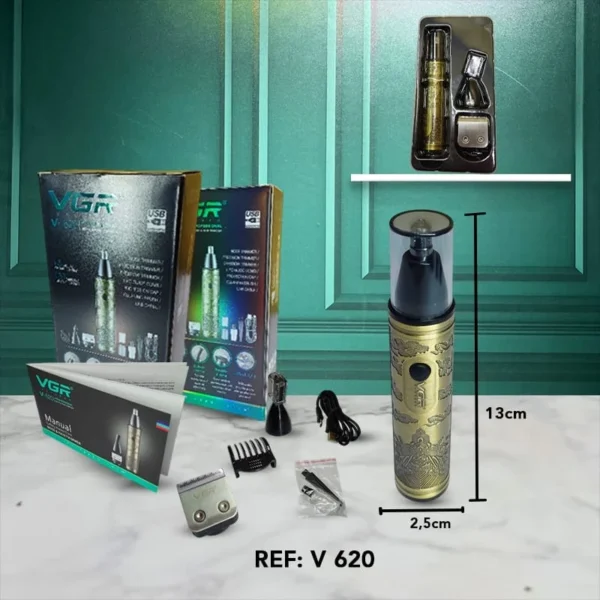 El VGR V‑620 3 en 1 Patillera es el recortador que necesitas para barba, nariz/orejas y cejas, con diseño multifuncional pensado para lucir limpio sin complicaciones.