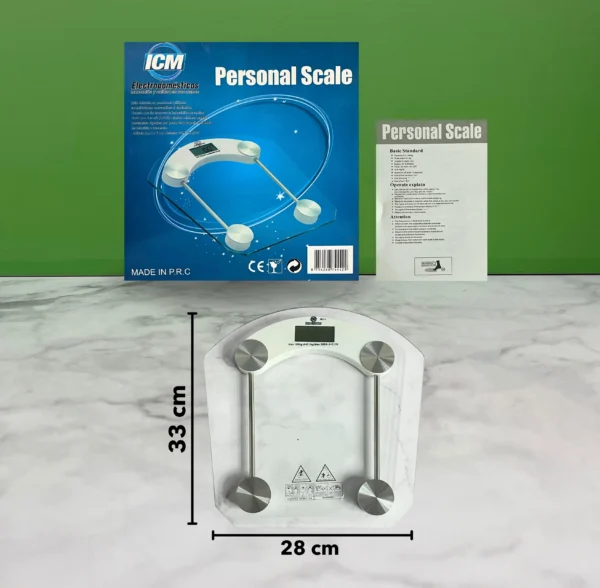 Moderna báscula digital de vidrio templado, ideal para uso diario en casa.