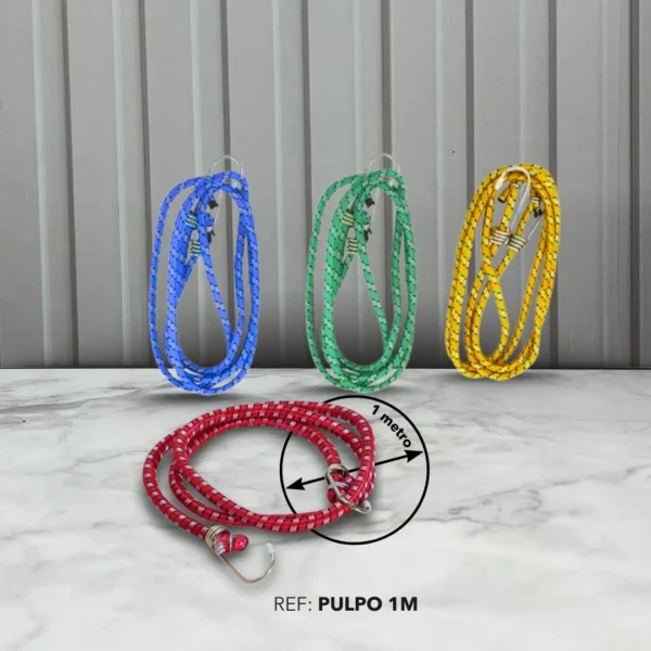 El Pulpo Elástico de 1 m es ideal para asegurar paquetes, maletas o equipaje en tu moto sin complicaciones.