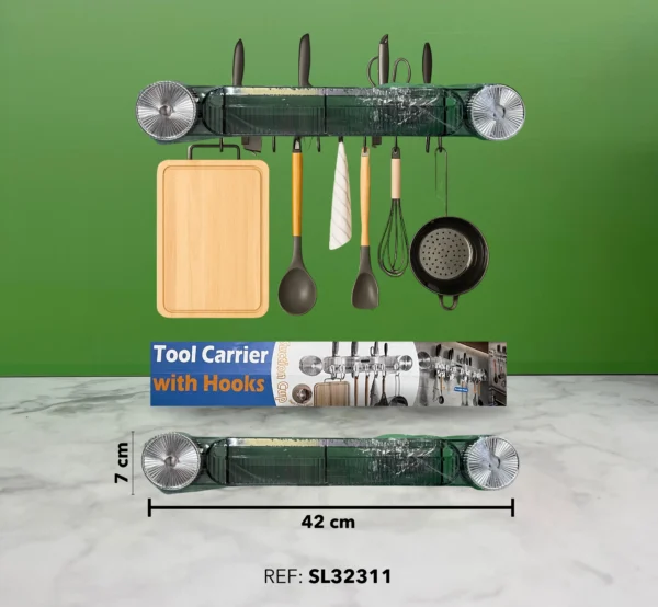 • Ideal para colgar utensilios, tablas de picar, tijeras, ollas pequeñas y más.