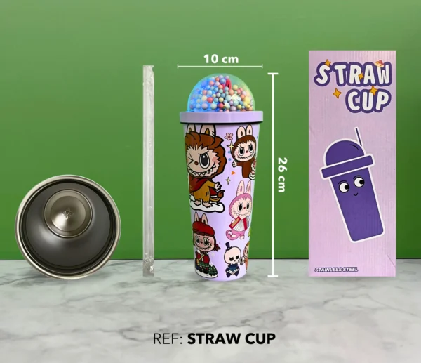 Con diseño exclusivo de Labubu, tapa transparente con bolitas decorativas y luces que lo hacen brillar de una forma única.