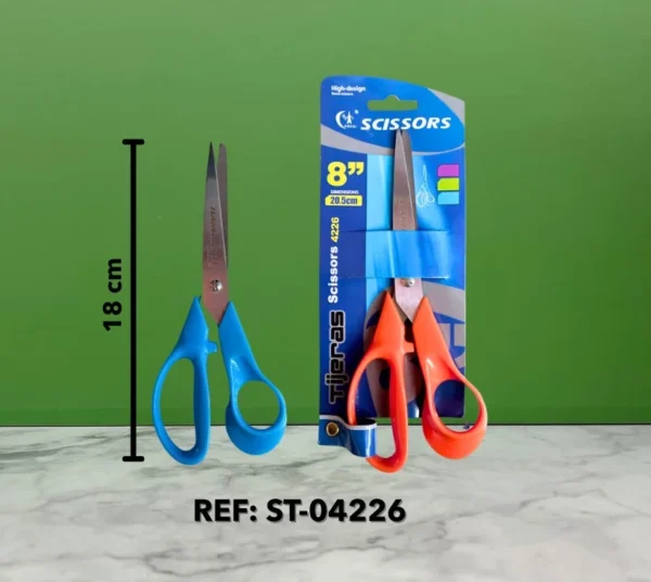 Versátiles, duraderas y con estilo. Estas tijeras cuentan con hojas de acero inoxidable que ofrecen cortes precisos y resistentes, junto con un mango ergonómico de plástico que brinda comodidad y control en cada uso. Ideales para actividades en el hogar, oficina o manualidades, y disponibles en colores llamativos para un toque más moderno