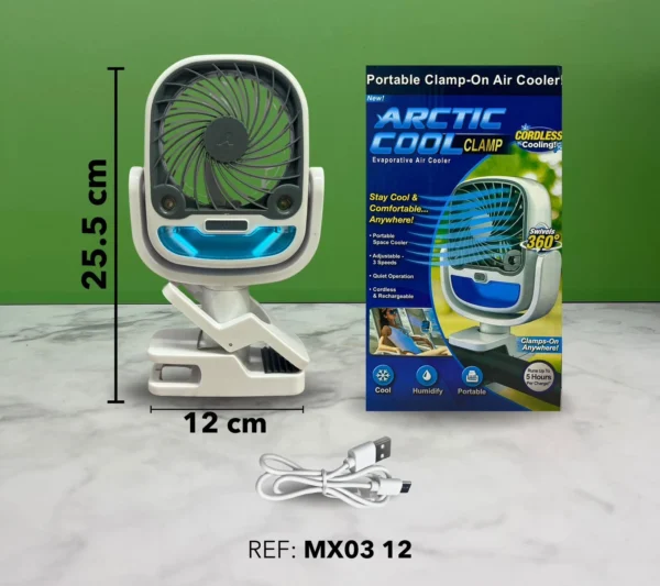 • Clip ajustable que se sujeta fácilmente en escritorios, camas, cochecitos y más.