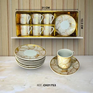 Set de pocillos y platos dorados x12 ch21753
